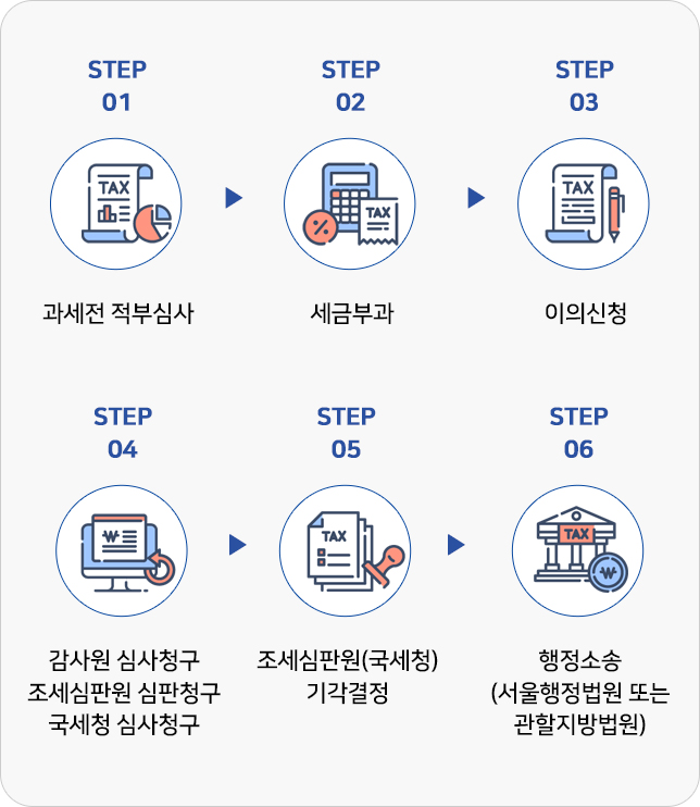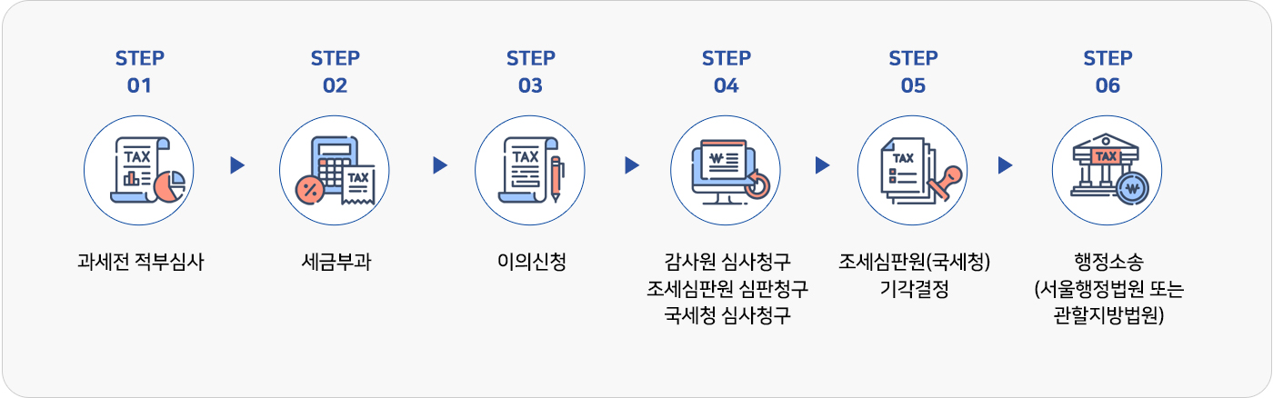 불합리한 과세처분으로 억울한 세금이 부과 되었을 때, 이에 대한 고충처리요구 및 시정요구, 심사청구와 같은 심판청구를 진행하는 것으로 사전 권리구제(과세전적부심사청구)와 사후 권리구제(조세불복) 두 가지로 구분됩니다.